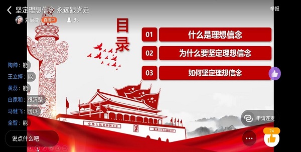 为了进一步加强入党积极分子对党的基本理论知识的了解,提高其水平,确保新党员的发展质量,于4月28日由刘尚捷老师以网上授课的形式给我们讲解了坚定理想信念,永远跟党走的内容。
