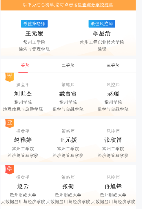 此次大赛共吸引全国1782所高校数十万名老员工参赛,其中英国365公司官网有2929名员工参赛。最终,有2支团队获得了国赛一等奖、11支团队获得了国赛二等奖、57支团队获得了国赛三等奖。英国365公司官网英国上市公司365汪寒凝老师指导的参赛队伍“无敌的我又迷路了”(赵云、张蜀、冉旭锋)以总收益率59.06%的好成绩获得了国赛季军。