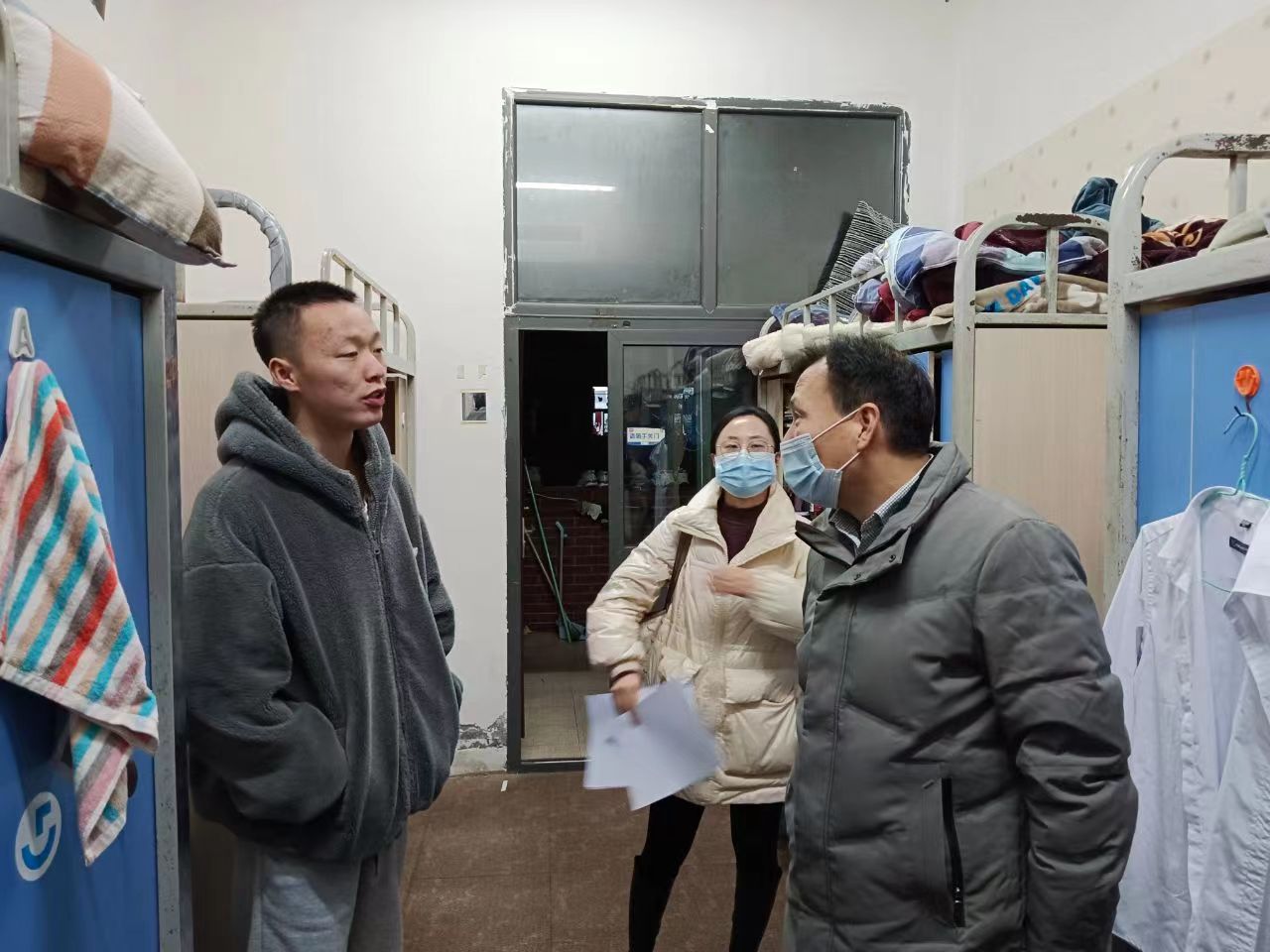 在走访过程中,老师们仔细查看了各寝室的环境卫生、疫情防控工作落实情况以及御寒准备情况,向同学们强调了寝室安全问题,并与员工亲切交流,详细了解了员工近期的学习情况及思想动态,叮嘱同学们要积极备考,以积极的心态对待学习和生活,公司领导无微不至的关心,让同学们深受鼓舞和感动。